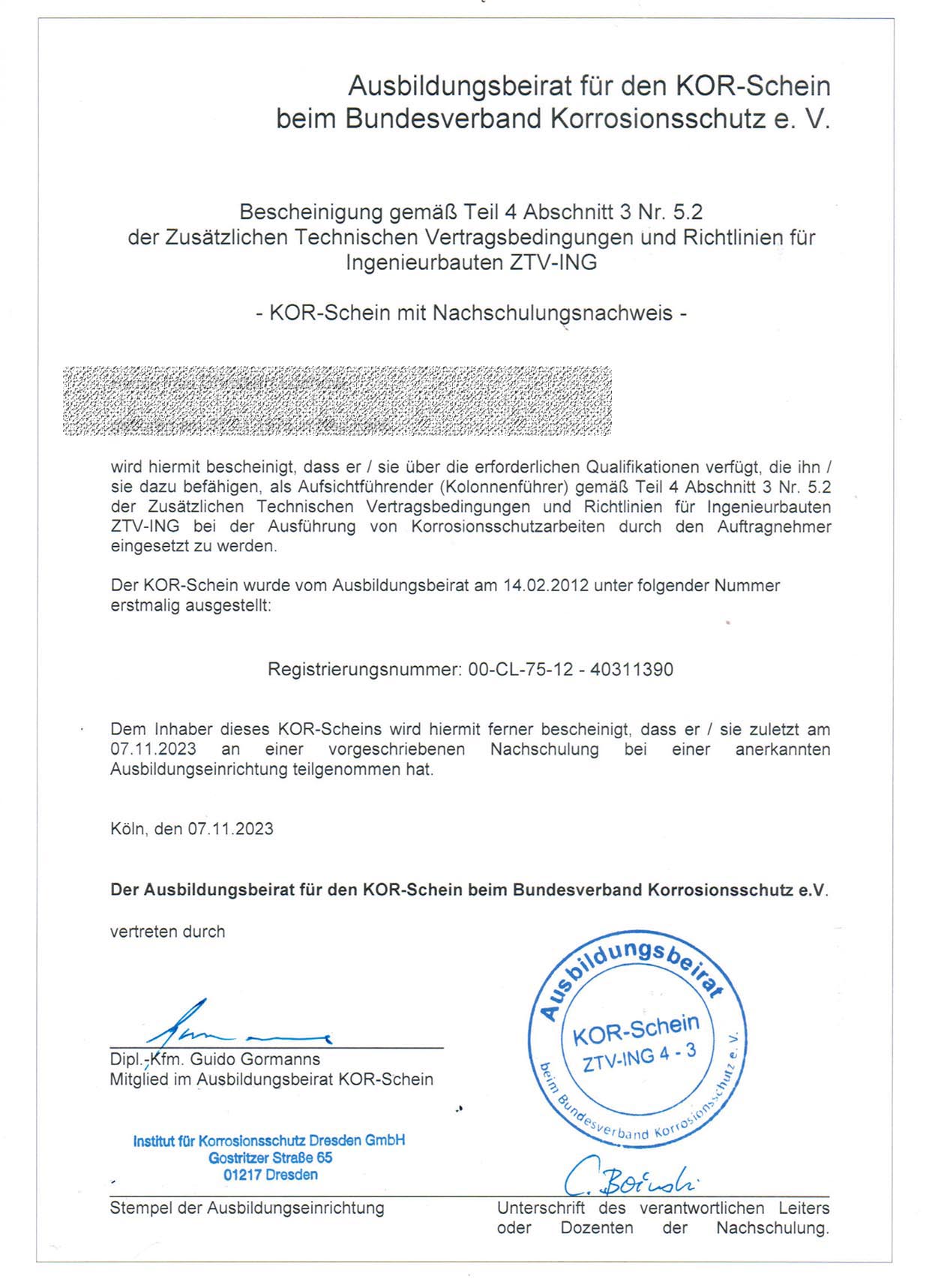 • qualifiziertes Führungspersonal für Korrosionsschutzleistungen